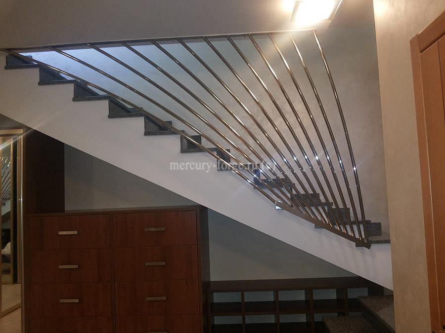 Фото современных лестничных ограждений. - Современное лестничное ограждение из металла(нержавеющая сталь).